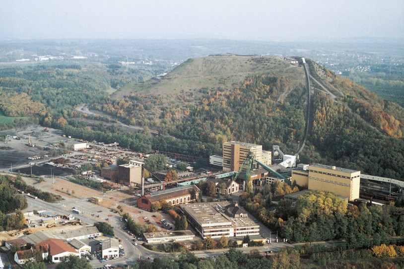 Historisches Luftbild des ehemaligen Bergwerks Saar und der Halde Duhamel in Ensdorf. Foto: RAG-Archiv Saar