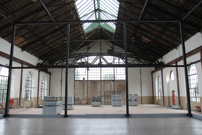 Außenaufnahme der ehemaligen Maschinenhalle während des Umbaus. Foto: RAG-Archiv Saar