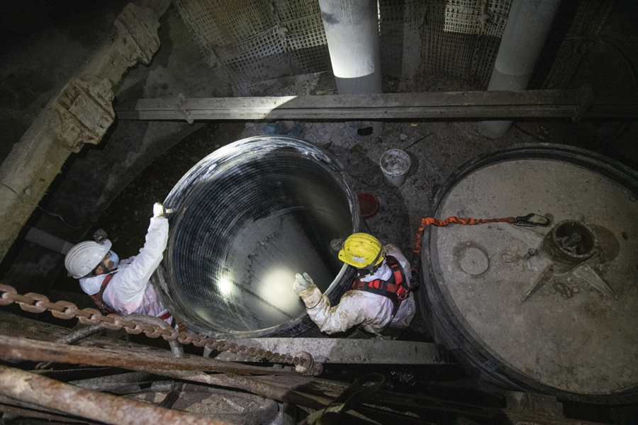 Auch für die beiden Bergwerke in Ibbenbüren und Bottrop, die noch bis zuletzt gefördert hatten, naht nun, rund zwei Jahre nach der Stilllegung der Produktion, mit dem endgültigen Abstellen der Pumpen der unwiderrufliche Abschied aus dem Grubengebäude. Während im Tecklenburger Land der Abschlussbetriebsplan zum Verlassen des Restgrubengebäudes bereits im April genehmigt worden war, erteilte die Bergbehörde diese letzte Genehmigung im November auch für Prosper-Haniel. Mit der zum Jahresbeginn erwarteten Zulassung für die Abschlussbetriebsplanergänzung des ehemaligen Bergwerks Lohberg wird die RAG dem vollständigen untertägigen Rückzug und damit der Umsetzung des Grubenwasserkonzepts im Ruhrgebiet einen weiteren entscheidenden Schritt näherkommen, denn der Standort in Dinslaken ist im Konzept der RAG von ganz entscheidender Bedeutung. „Mit dieser Zulassung kann das Grubenwasser dort auf ein Niveau von -630 Meter ansteigen. Dies wiederum ist die Voraussetzung dafür, dass das Grubenwasser von Prosper-Haniel nach Lohberg überlaufen kann und nicht mehr in die Emscher eingeleitet werden muss“, erläutert Schrimpf. Damit sei ein wichtiger Schritt getan, die Emscher bis Ende 2021 vollständig von Grubenwasser zu befreien. So könne dann auch das Generationenprojekt Emscherumbau abgeschlossen werden.