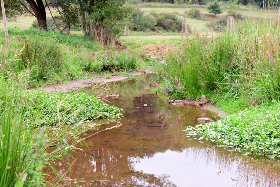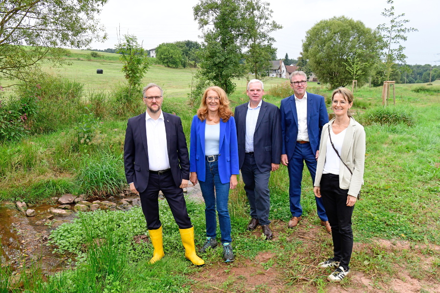Die Landschaftsagentur Plus GmbH (LA Plus) hat den Ellbach in Saarwellingen, im Bereich Labacher Hof, renaturiert. Die Planungskosten wurden von der Gemeinde und dem Land getragen, die LA Plus wurde mit der Umsetzung beauftragt. Die Baukosten für den jetzt fertiggestellten Abschnitt übernahm die RAG Aktiengesellschaft (RAG). Auf 500 Metern wurde das über Jahrzehnte kanalartig begradigte und ökologisch verarmte Gewässer in einen naturnahen Zustand zurückgeführt – mit Flutmulden, strukturreichen Uferzonen und neuen Lebensräumen für Libellen, Amphibien und Wasservögel. Heute (20. August) nahmen Petra Berg, Ministerin für Umwelt, Klima, Mobilität, Agrar und Verbraucherschutz des Saarlandes und Dr. Horst Brünnet, Bürgermeister der Gemeinde Saarwellingen, gemeinsam mit Joachim Löchte, Vorstand Technik der RAG, sowie Nicole Büsing und Markus Kissenbeck, beide Geschäftsführung LA Plus, das Ergebnis in Augenschein.