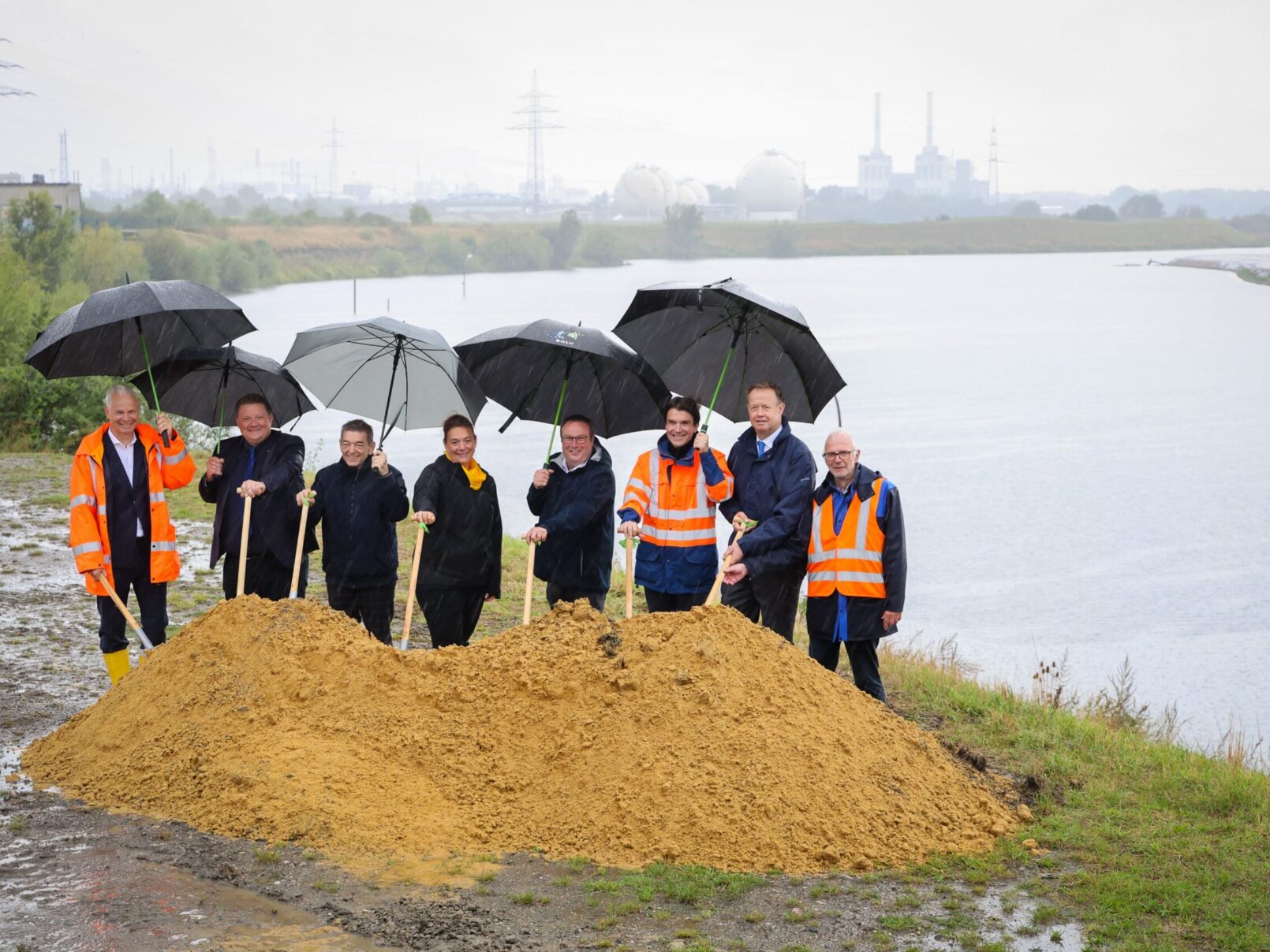 Haltern-Lippramsdorf/Marl. Mit einer ersten Machbarkeitsstudie begann vor genau 20 Jahren, im Jahr 2005, das wohl größte Hochwasserschutzprojekt Nordrhein-Westfalens: der Neubau der Lippe-Deiche in Haltern-Lippramsdorf und Marl (HaLiMa). Seit dem ersten Spatenstich vor neun Jahren ist das 95-Millionen-Euro-Vorhaben weit fortgeschritten: Die Deiche auf der Nordseite sind bereits fertiggestellt – durch die Rückverlegung der Hochwasserschutzanlagen ins Hinterland hat die Lippe zudem bereits deutlich an Raum gewonnen. Und es geht weiter: Am Dienstag (9.9.) gab der Lippeverband gemeinsam mit NRW-Umweltminister Oliver Krischer den Startschuss für den Neubau eines 500 Meter langen Deiches auf der Südseite des Flusses. Das Großprojekt soll bis Ende 2027 fertiggestellt werden. Dann werden moderne Deiche entstanden sein, die auch einem extremen Hochwasser standhalten können, wie es statistisch betrachtet nur alle 250 Jahre auftritt – und darüber hinaus eine rund 60 Hektar große Aue, die ideale Lebensbedingungen für zahlreiche Tier- und Pflanzenarten bieten wird. Das blaugrüne Leben kehrt an die Lippe zurück!