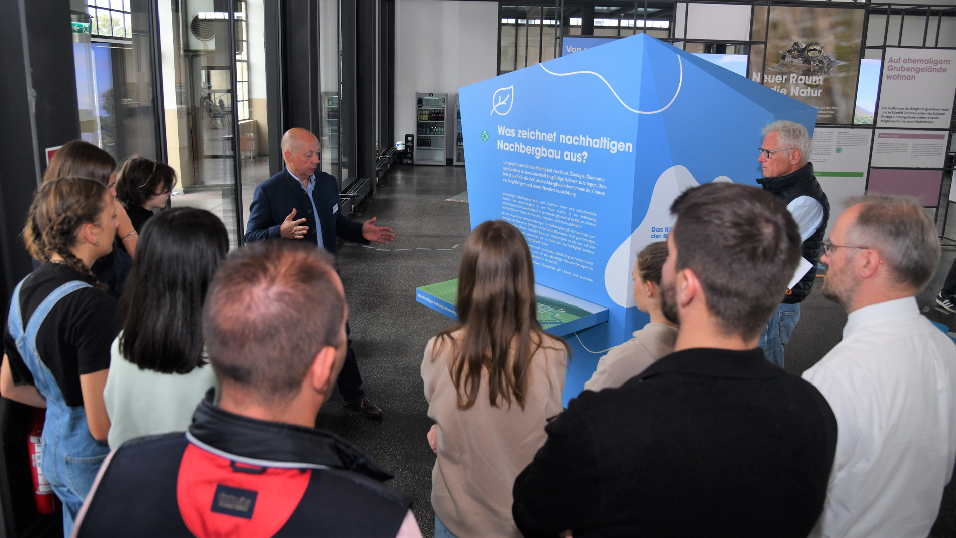 Nach einer Führung durch die Ausstellung zum Nachbergbau am Standort Duhamel in Ensdorf und einer gemeinsamen Wanderung hinauf zum Saarpolygon standen Fragen nach Ausbildung, Studium, Arbeitswelt, Sport und Freizeit auf dem Programm.