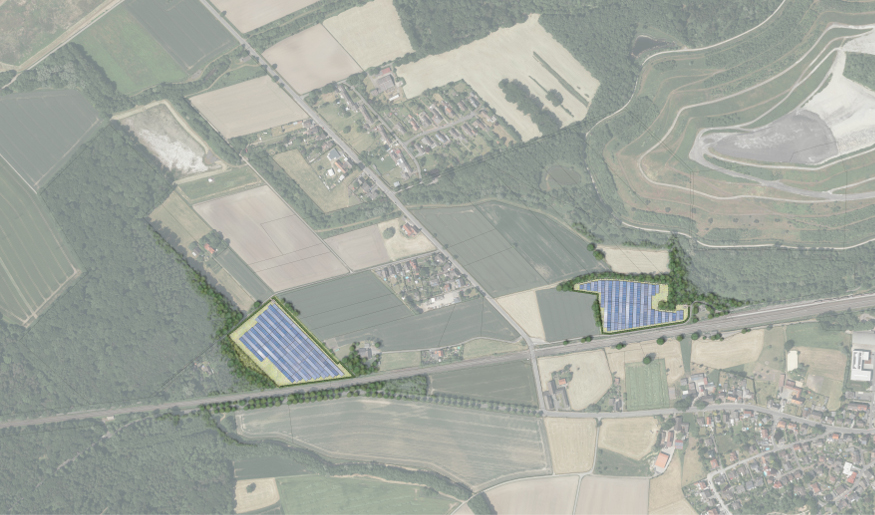 Die geplante Photovoltaik-Freiflächenanlage wird auf zwei getrennten Flächen in direkter Nähe zur mehrgleisigen Bahntrasse errichtet. Die westliche Fläche liegt an der Schlehdorn Straße, die östliche Fläche an der Sandbochumer Straße.