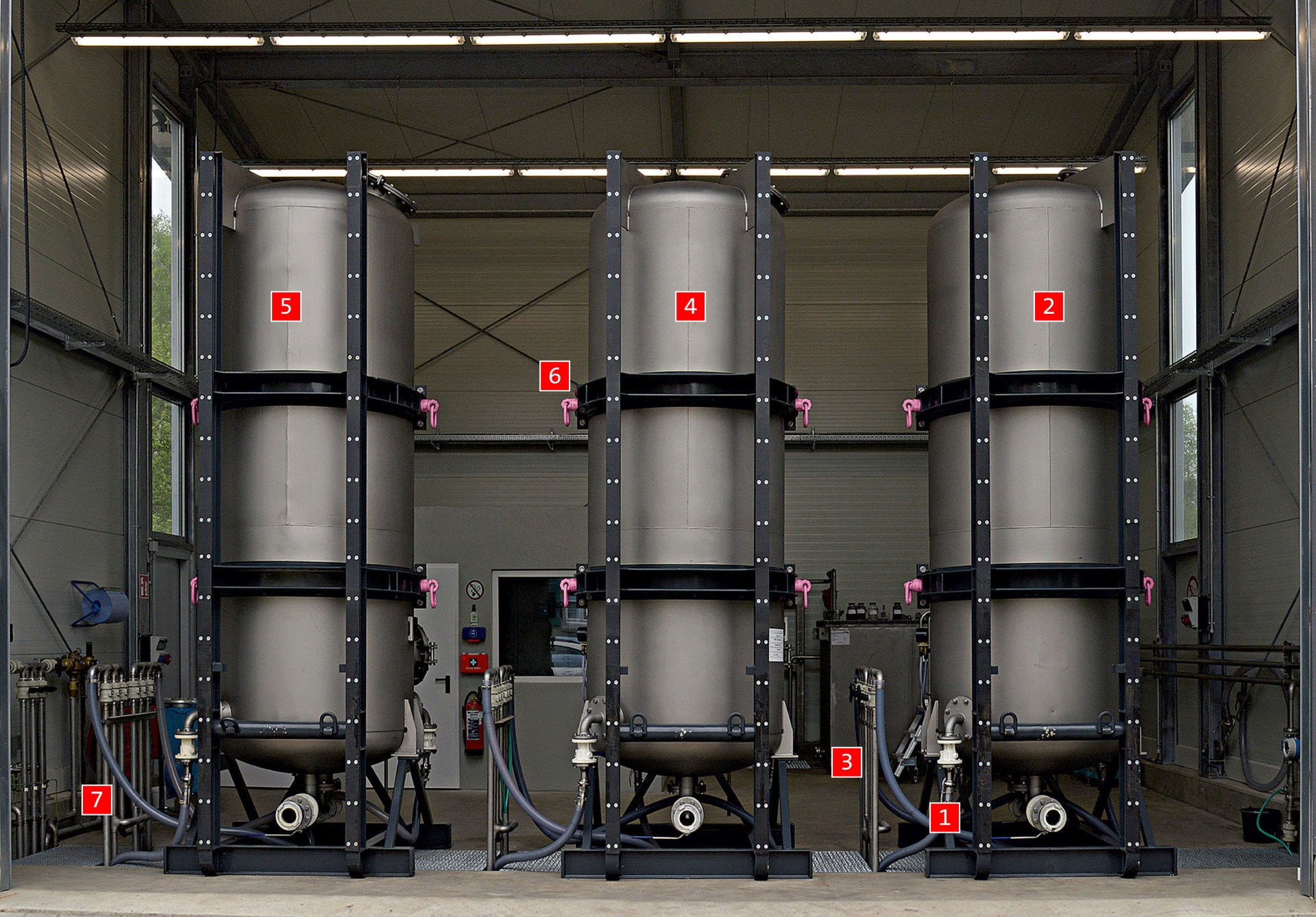 Ein dritter Adsorber steht als Reserve oder „Polizeifilter” für den Austausch bereit.