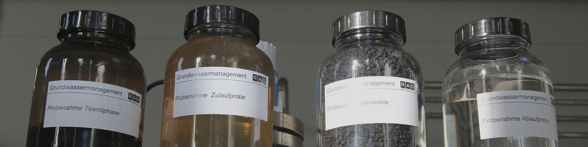 Oft entsteht parallel zum Umlagerungsbauwerk eine Grundwasserreinigungsanlage, die das kontaminierte Grundwasser mit Drainagen oder Brunnen abfängt. Sofern mit dem verunreinigten Grundwasser auch Teeröltropfen gefördert werden, wird die Teerölphase in einem Vorlagetank abgeschieden. Danach reinigt Aktivkohle in großen Adsorbern das Grundwasser. Die verwendeten Adsorber lassen sich untereinander austauschen, was eine verbesserte Kapazitätsanpassung zwischen einzelnen Anlagen ermöglicht. Bei Bedarf können die Mitarbeiter Filter abschalten und wechseln. Der Ersatz der erschöpften Aktivkohle erfolgt durch Austausch eines kompletten, straßentransporttauglichen Filters. Die gebrauchte Aktivkohle wird thermisch regeneriert und anschließend wiederverwendet. Hat das Wasser den Weg durch die Aktivkohleadsorber durchlaufen, entspricht es den behördlich vorgeschriebenen Einleitwerten und fließt in die Kanalisation oder in ein Gewässer. Alle zwei Wochen überprüft ein unabhängiges Institut die Qualität des gereinigten Wassers. Rund 900.000 Kubikmeter Grundwasser reinigt die RAG im Jahr auf diese Weise. Derzeit befinden sich 21 Grundwasserreinigungsanlagen in Betrieb, deren Daten bei der RAG in Essen und in der Leitwarte am Standort Pluto zusammenlaufen. Neben einer Systemüberwachung erfolgt hier auch die Abfrage und Kontrolle hydrogeologischer Daten wie Grundwasserniveau und -fördermenge sowie eine Datenspeicherung zur Information der beteiligten Behörden.